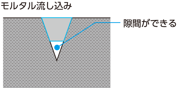 - 先端部に空隙ができる