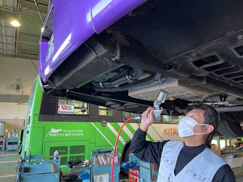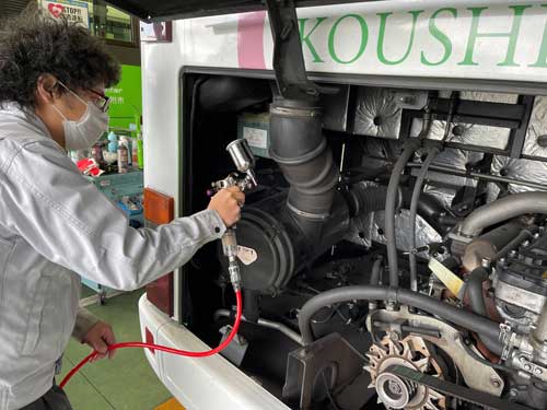 エンジンルームにも吹き付け塗布